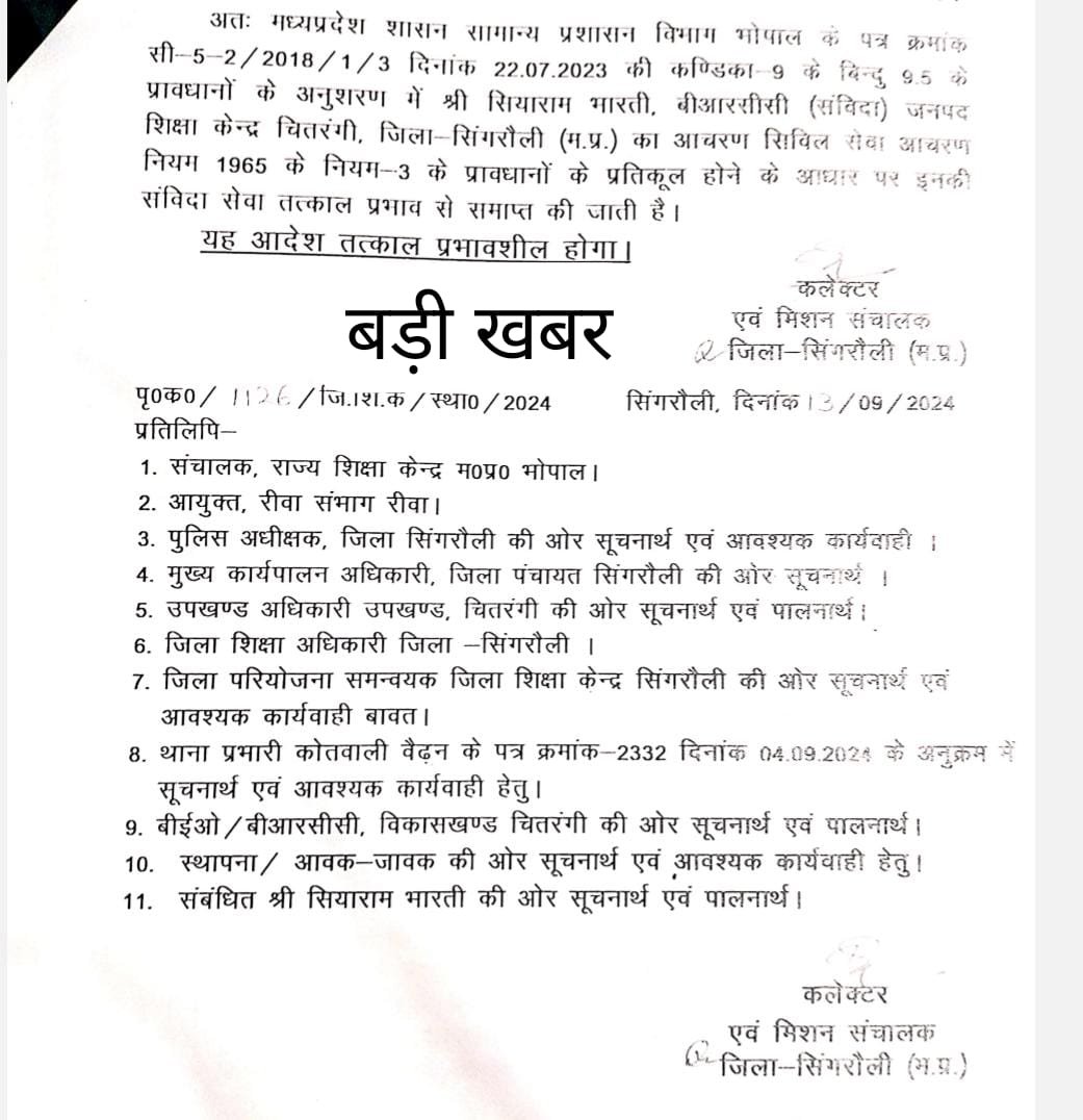 जिला पंचायत सीईओ ने अनाधिकृत रूप से शिक्षक पुत्र द्वारा अध्यापन कराए जाने पर एफआईआर के दिए निर्देश