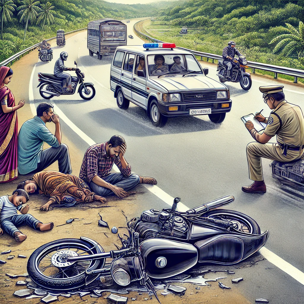 राष्ट्रीय राजमार्ग पर सड़क हादसा वाहन चालक भागा, घायल यात्री को मुआवजा और पुलिस की जिम्मेदारी