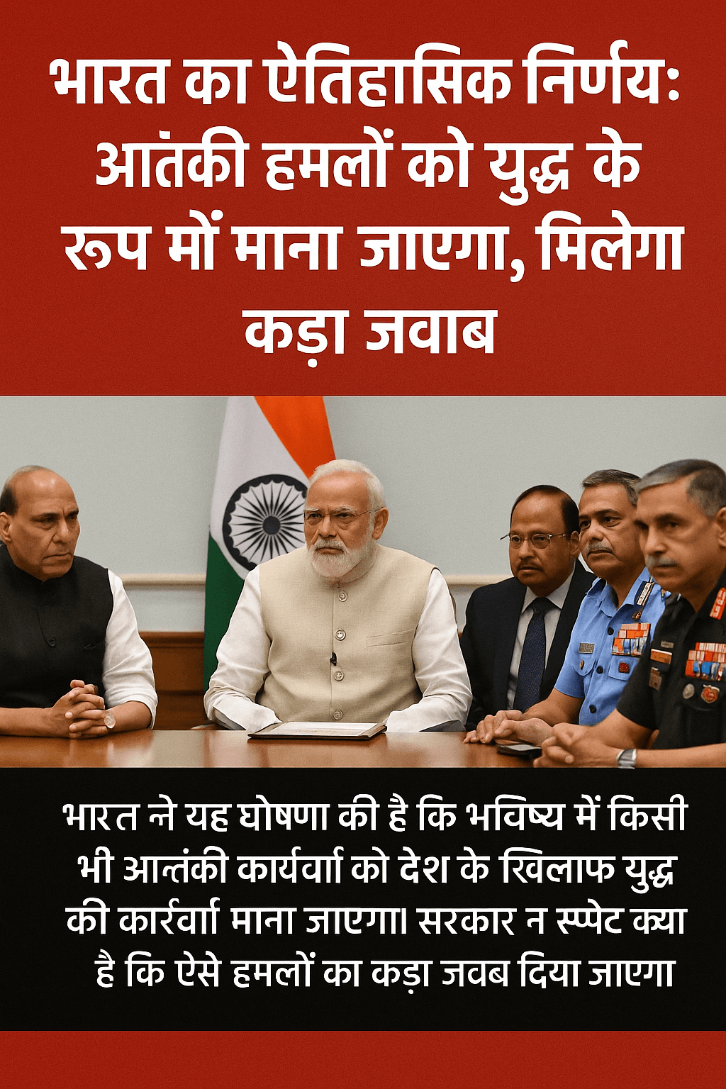 भारत का ऐतिहासिक निर्णय आतंकी हमलों को अब ‘युद्ध की कार्रवाई’ माना जाएगा, मिलेगा कड़ा…