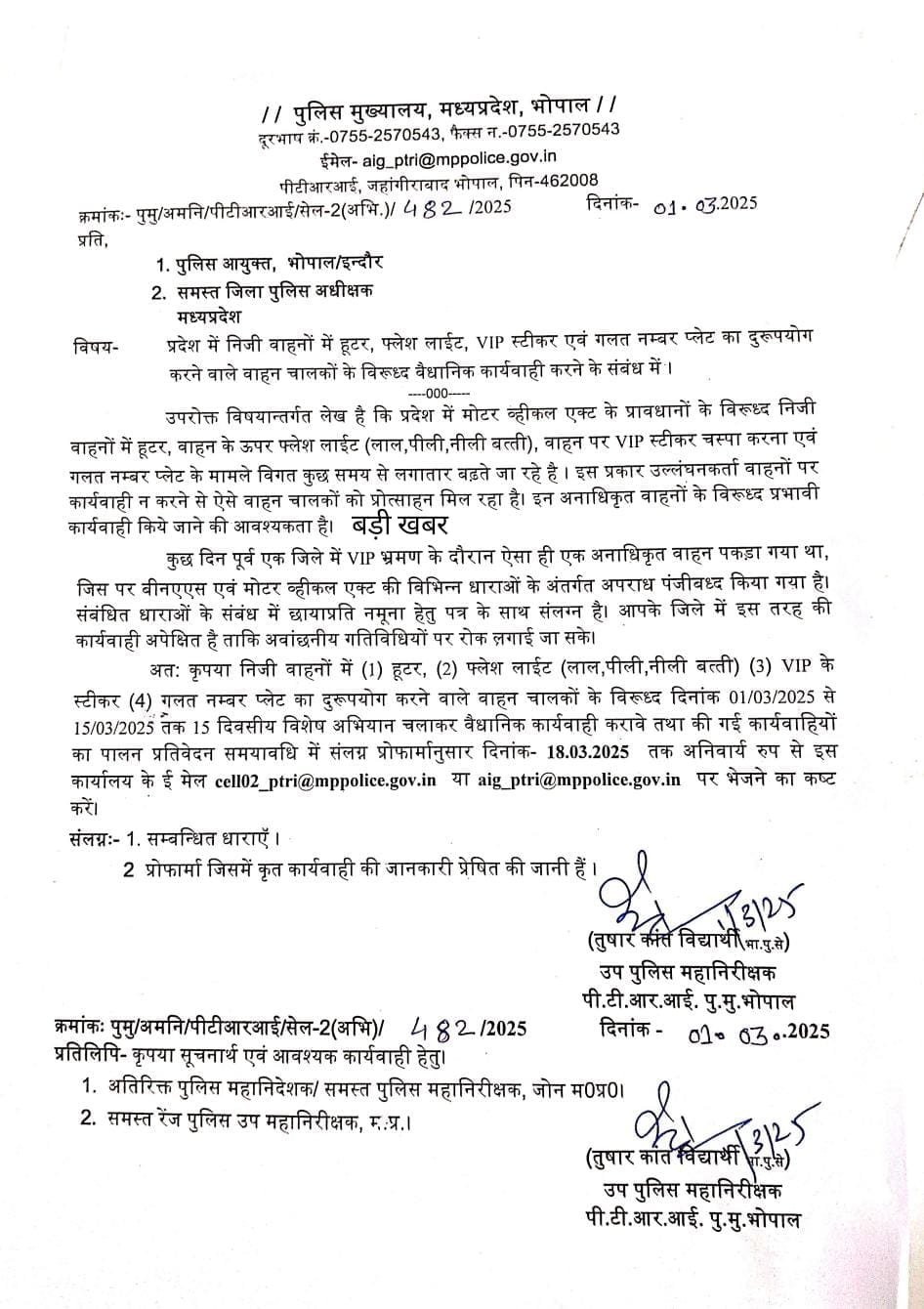 अनूपपुर: प्रदेशभर में पुलिस मुख्यालय द्वारा वाहनों से गैरकानूनी हूटर, वीआईपी स्टिकर और डिजाइनर नंबर…